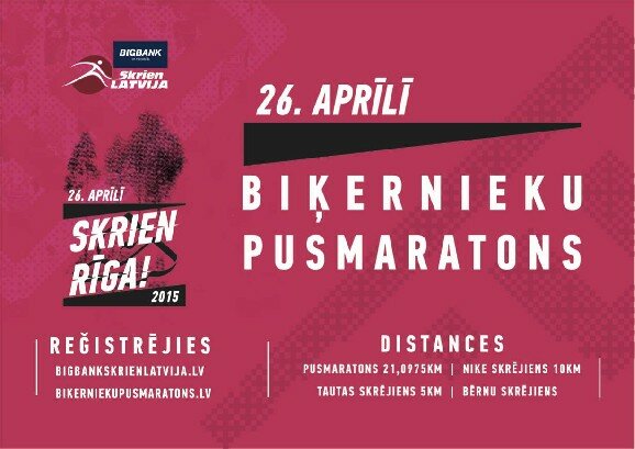 26. aprīlī Rīgā, Latvijas autosporta šūpulī, ar Biķernieku pusmaratonu turpināsies Latvijas grandiozākais skriešanas seriāls „BIGBANK Skrien Latvija”. Sezonas otrajā posmā dalībnieki varēs sacensties klasiskajā pusmaratona distancē, 10,6 km NIKE skrējienā, 5,3 km Tautas skrējienā un, kā ierasts, dažādu distanču Bērnu skrējienos.